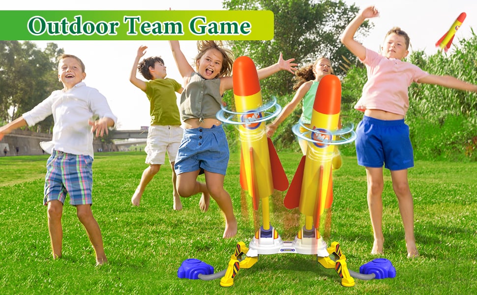 Fun Outdoor Activities: Kids can use the power of the air pump to launch rockets up to 100 feet into the air by running, jumping and stepping, making each launch go higher and farther.